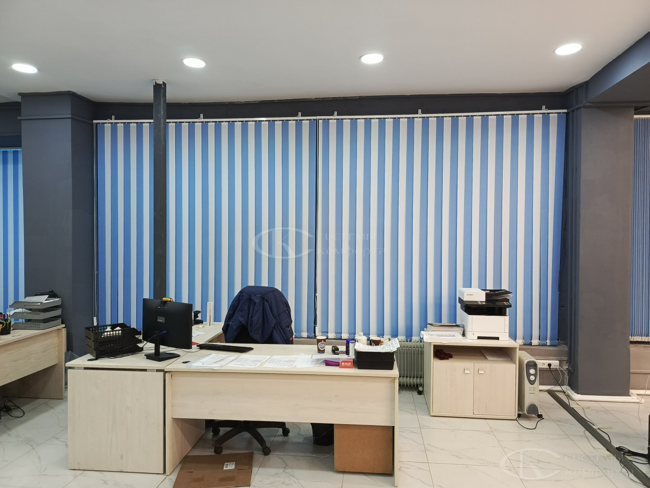 Вертикальные тканевые жалюзи — недорогой вариант солнцезащитной системы для дома или офиса. Они хорошо защищают помещение от солнца. Недостатком такой системы считаются быстрая поломка при неаккуратном обращении и загрязнение ткани при проветривании помещения. Но если очистить от грязи и пыли их не получается, то задача решается путем недорогой замены ламелей. Из преимуществ можно отметить огромный выбор цветов и фактуры, а также возможность нанесения фотопечати: картинки или логотипа. Бесплатный замерщик поможет выбрать модель и определиться с решением. Персональный менеджер поможет сделать предварительный расчет.